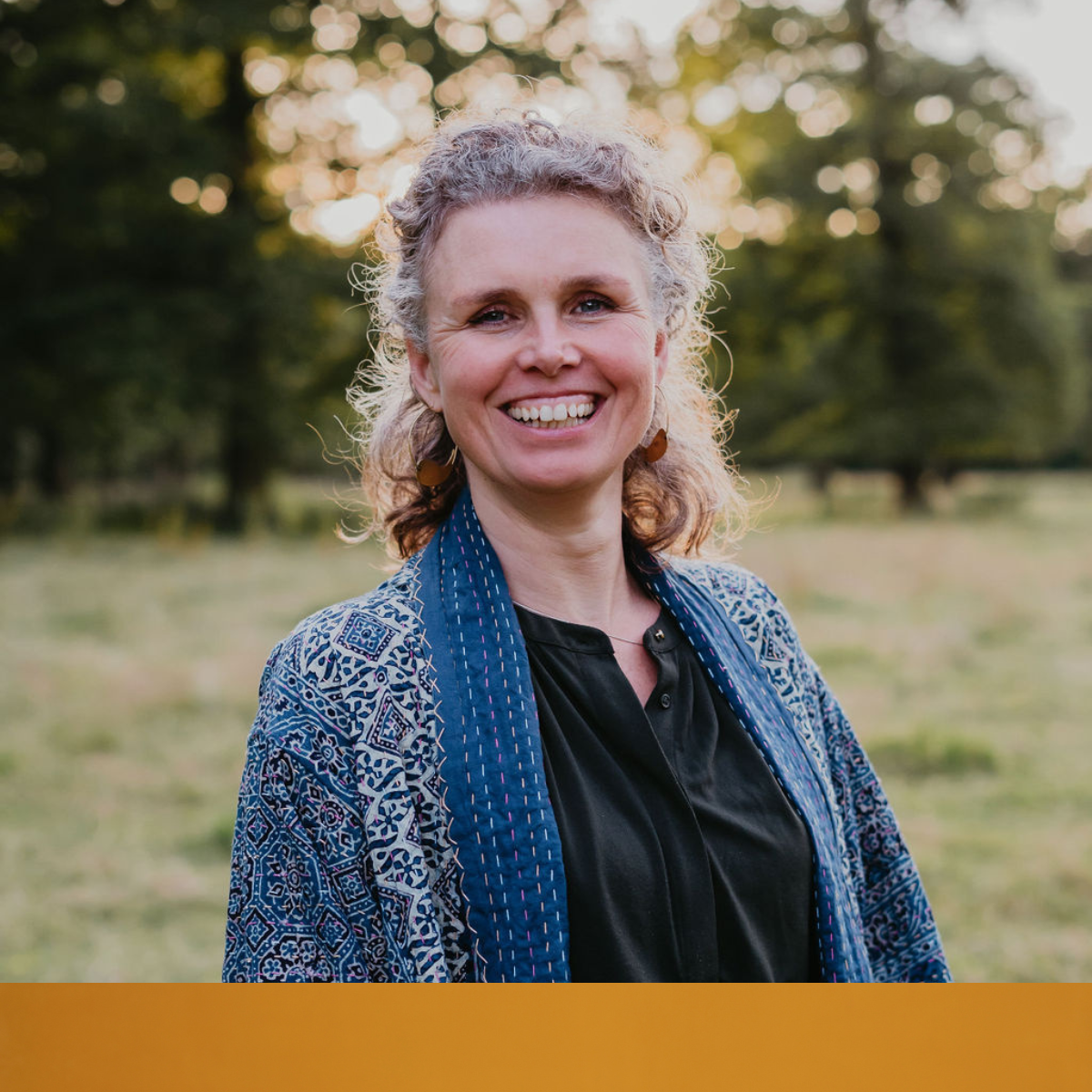Achter haar rustige, nuchtere uitstraling schuilt een vrouw die het leven diep heeft doorvoeld. Met voeding, drumwerk en baarmoederrituelen begeleidt ze vrouwen terug naar hun eigen oerkracht — met beide voeten stevig op de aarde.